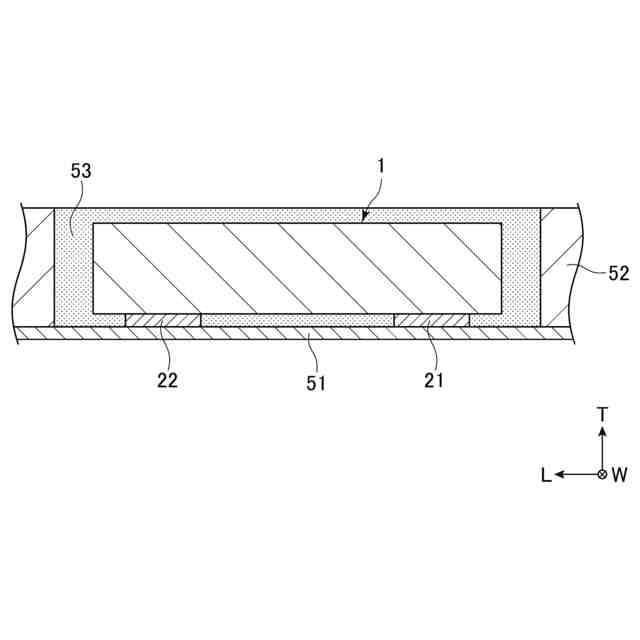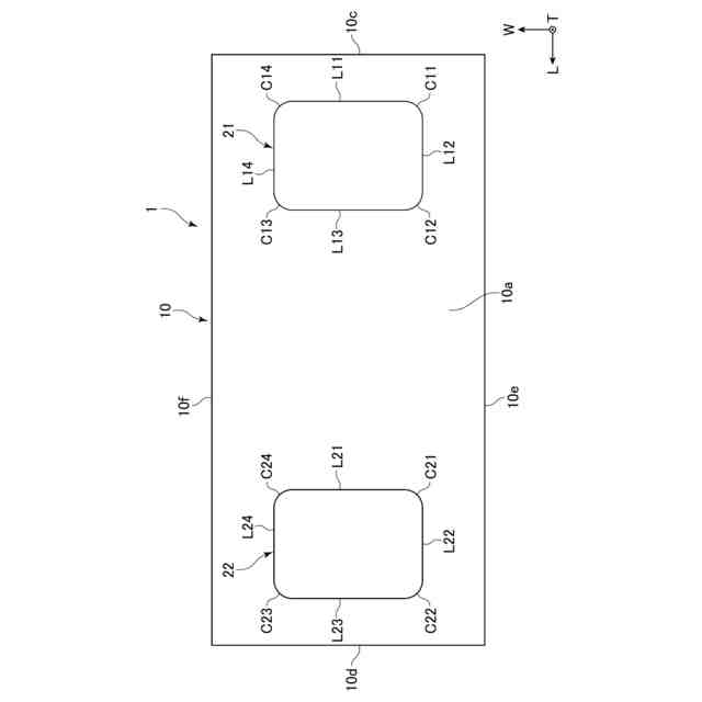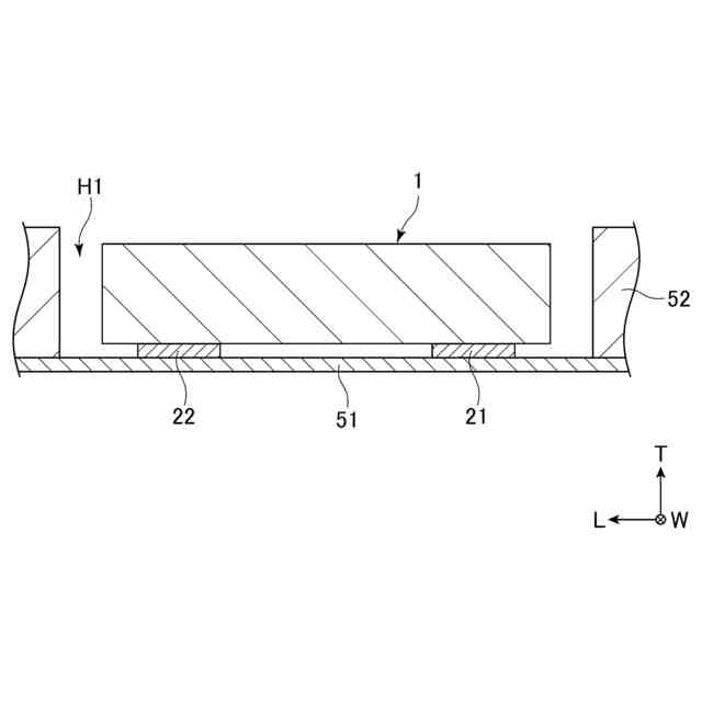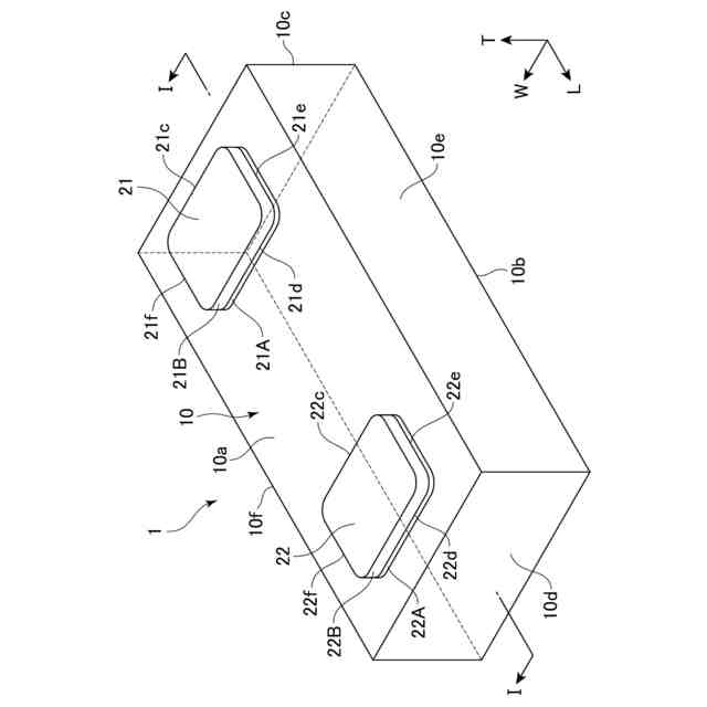 多くのコイル部品は、基板に表面実装されることが想定されている。コイル部品は、外部電極を基板表面に設けられている長方形形状のランドに接合することで、基板に表面実装される。このような背景から、コイル部品の外部電極は、ランドとの接合の信頼性を確保するために、実装面の法線方向から見たときに長方形を呈するように構成される。実装面からの視点で長方形を呈する外部電極の例は、引用文献1の図1Aに端子電極41、42として示されている。引用文献1の図8に示されているように、従来は、長方形形状の外部電極41、42を備えるコイル部品が、コイル部品内蔵基板に埋め込まれている。