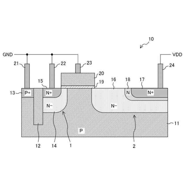 ドライバIC(Integrated Circuit)等の集積回路において、静電気放電(ESD: Electro-Static-Discharge)による過大な入力電圧・電流に対して内部回路を保護するトランジスタ構造の静電気保護素子が用いられている。トランジスタ構造の静電気保護素子においては、ESDサージ印加時に、ドレイン領域における不純物の濃度勾配に応じた電界集中が起こり、格子温度が上昇する。格子温度が過大になると静電気保護素子は破壊に至る。