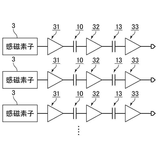 ただし、この方式では、各チャンネルが有する感磁素子からの出力が小さくなるため、従来の多チャンネル方式の磁気ラインセンサでは顕在化していなかったノイズが新たな課題となることが判明した。