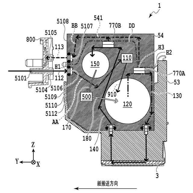 吐出ユニットのインク流れを示した断面図である。