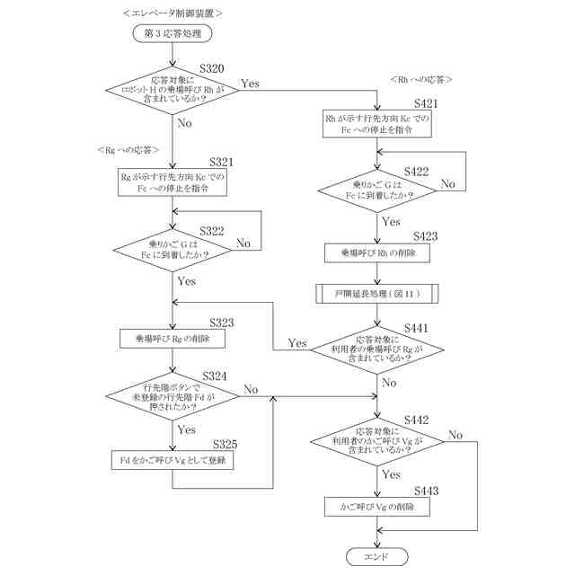 このように、ロボットの乗車階から目的階まで、かご呼びを発生させずに乗りかごを移動させることが可能になる。しかも、ロボットの乗車階からは、第1の乗場呼びが示す行先方向で乗りかごを出発させ、ロボットの目的階には、第2の乗場呼びが示す行先方向で乗りかごを到着させることが可能になる。よって、その乗りかごにロボットを乗車階で乗車させ、その後、当該乗りかごからロボットを目的階で降車させることにより、ロボットを、かご呼びの登録なしに、第1及び第2の乗場呼びが示す行先方向で決まる搬送方向で乗車階から目的階まで移動させることが可能になる。
