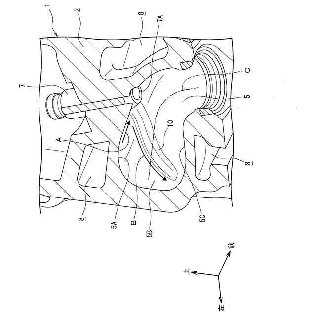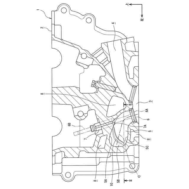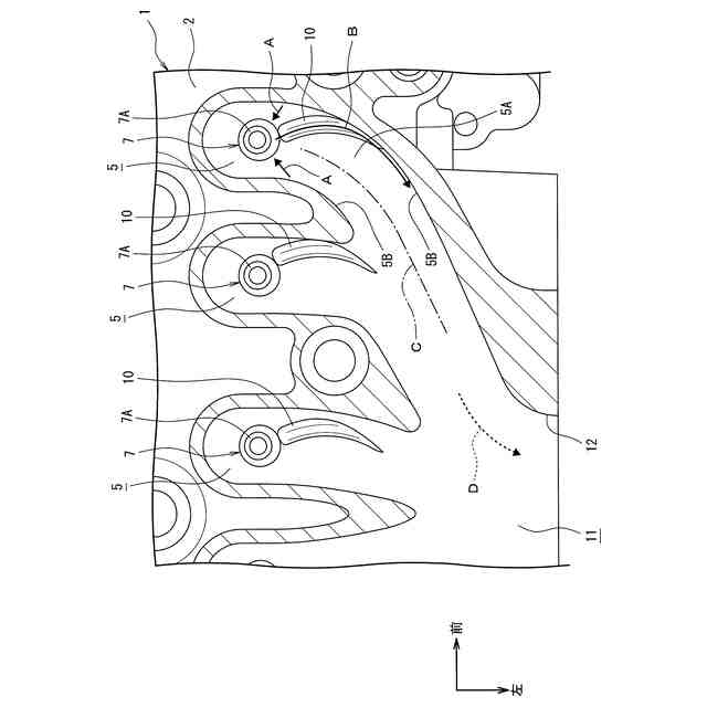 図1は、本発明の一実施例に係るエンジンの排気ポート構造を備えたエンジンのシリンダヘッドの断面図である。