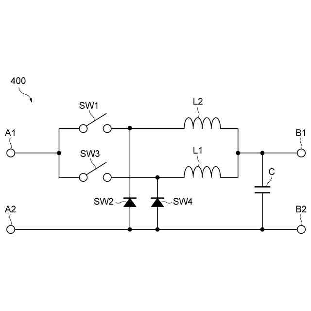 前記第1スイッチング素子と前記第1の出力端子との間において前記第1回路に並列に接続され、第3スイッチング素子および第2インダクタがこの順に直列に接続されるとともに前記第3スイッチング素子と前記第2インダクタとの間に接続された第4スイッチング素子を含む第2回路と、