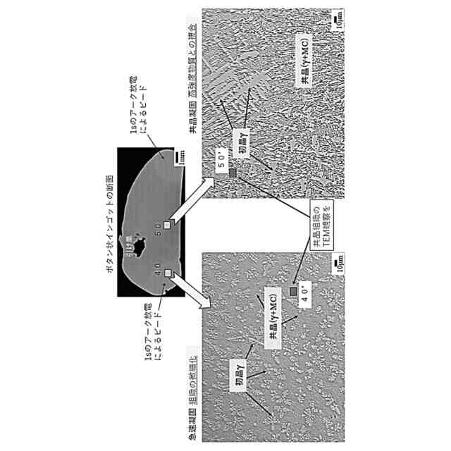 少なくとも鉄と炭素とクロムとニッケルを含有する液相を降温速度1,000℃/秒以上で冷却して、初晶組織及び金属炭化物を含む共晶凝固組織を形成し、