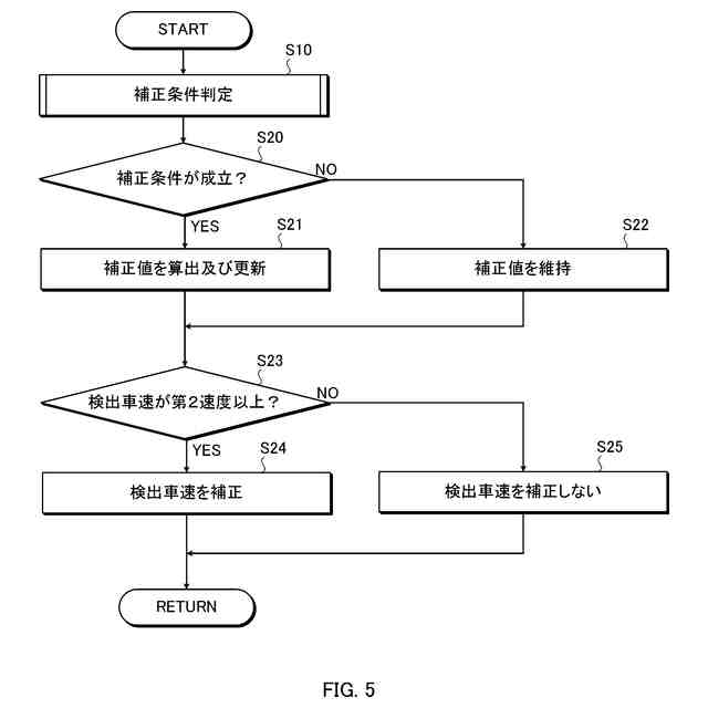 検出車速の補正を行う処理の一例を示すフローチャートである。