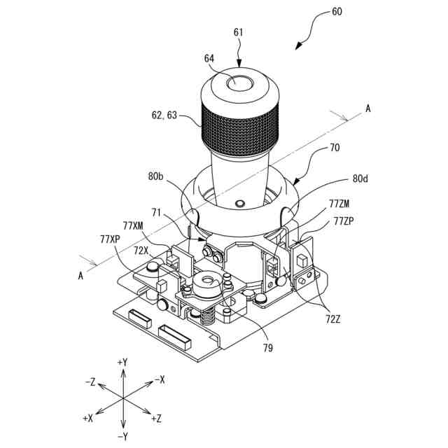 第1操作部61を、図4に示す状態から+X方向に傾倒させた状態を示す図である。