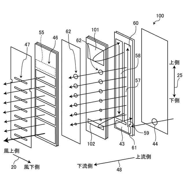 図7は、比較例2の熱交換器の第1折返し流路を示す分解斜視図である。