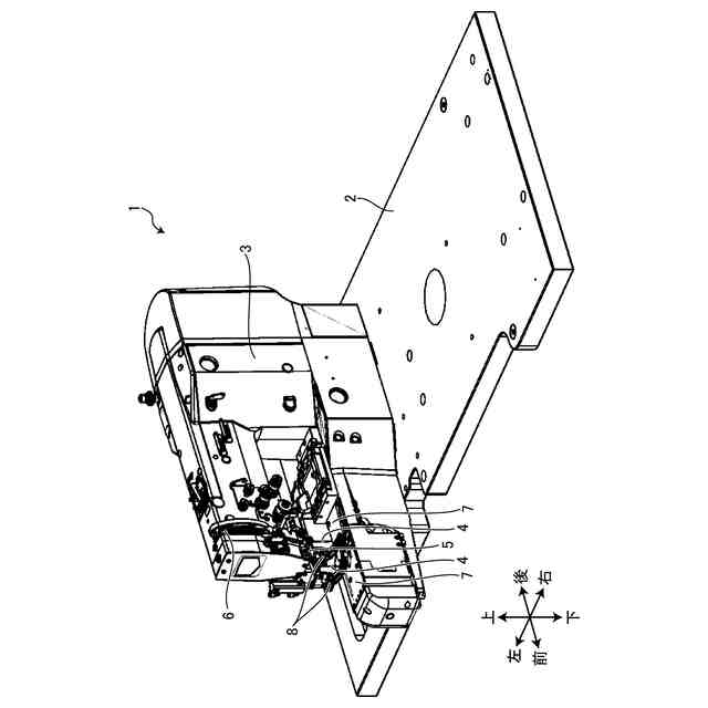 図1は、実施形態に係るミシン1を示す斜視図である。実施形態において、ミシン1は、工業用ミシンである。ミシン1は、2本針半回転釜本縫いミシンである。ミシン1は、ミシンフレーム3と、針棒5と、天秤6と、針板7と、押さえ8とを備える。
