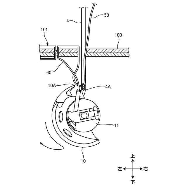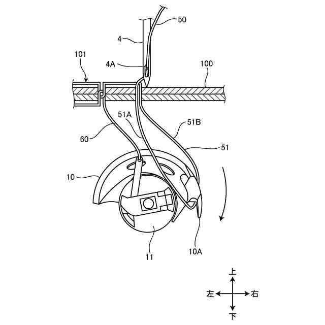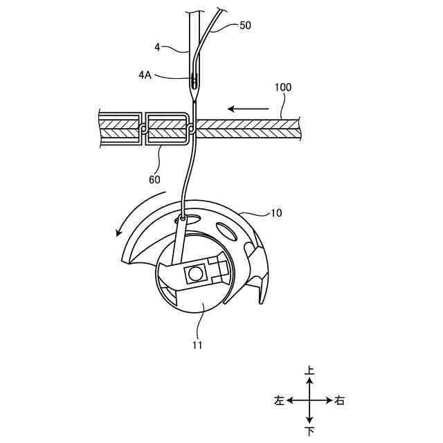 本明細書で開示する技術は、半回転釜を用いた2本針ミシンにおいて2本のミシン針の間隔を近付けることを目的とする。