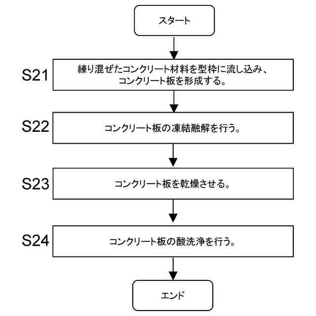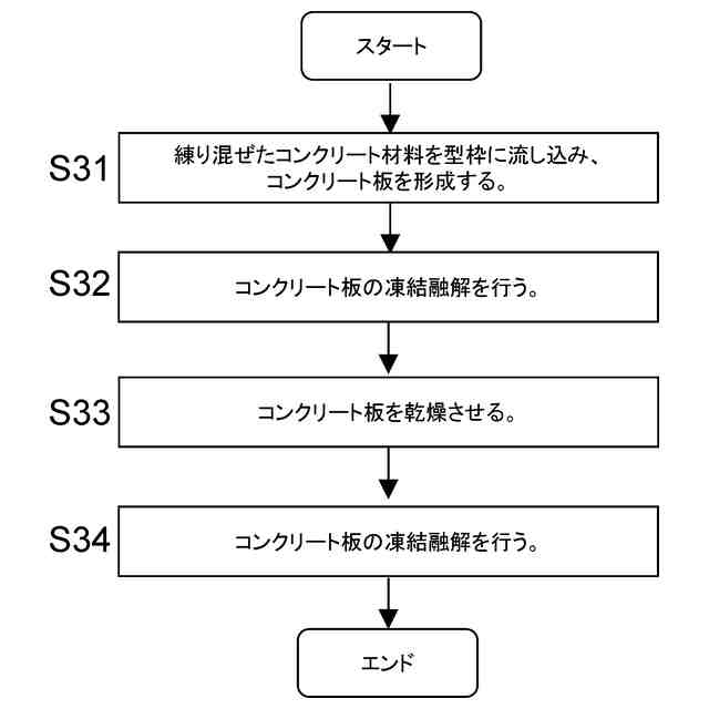 前記コンクリート板を凍結融解する工程は、前記コンクリート板を形成する工程の後で、前記コンクリート板を乾燥させる工程を経ずに実施される、