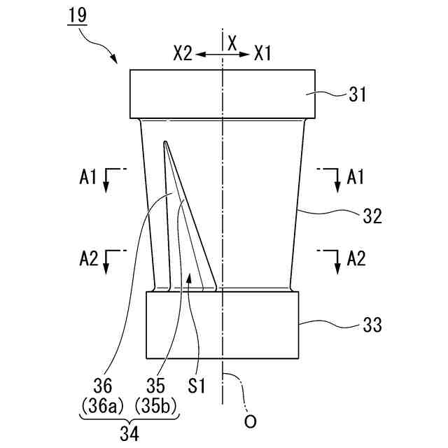 前記旋回羽根は、それぞれの径方向内側の端部が互いに接続された第1羽根片及び第2羽根片を有し、