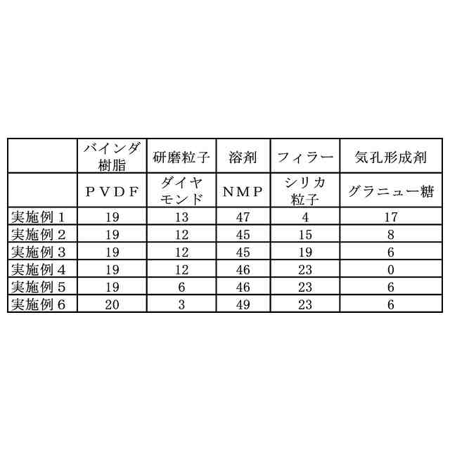 等の研磨粒子と、炭酸ナトリウム等のアルカリ微粒子とからなる。特許文献2のペーストは、エーテル系ウレタンと、N,N-ジメチルホルムアミド等の溶剤とからなる。特許文献3のペーストは、ウレタンと、溶剤と、撥水剤とからなる。乾燥等による溶剤の除去により、ウレタンは不織布に結合した状態で固化している。特許文献4の研磨パッドは、バインダ樹脂、研磨粒子及び溶剤を混合したペーストを用いて製造したものである。