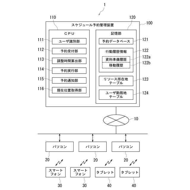 本開示の一実施形態に係るスケジュール予約管理システム1の機能的構成を示すブロック図である。