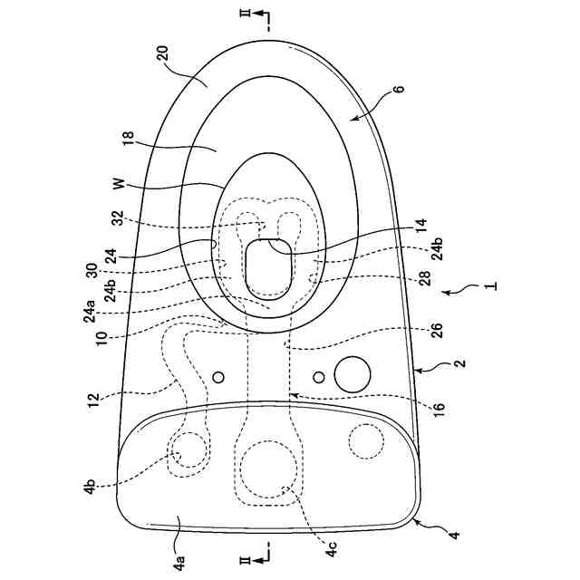このように構成された本発明によれば、第1屈曲流路及び第2屈曲流路が、平面視において、ジェット導水路の左右方向の中心軸を中心として左右対称に形成されているので、ジェット吐水口から吐水される洗浄水の流速分布を均一にすることができ、汚物の排出性能を向上させることができる。
