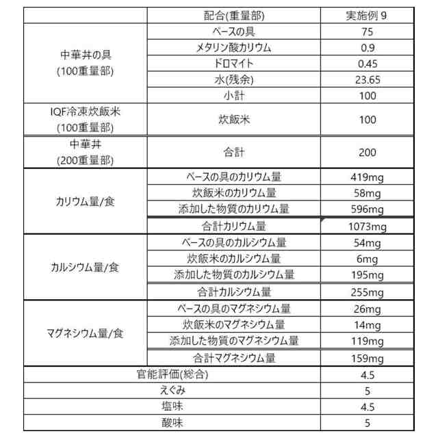[11] 食品100kcalあたり50mg~5gのメタリン酸カリウムまたは食品100kcalあたり100mg~10gのグルコン酸カリウムを添加する、上記[9]または[10]に記載の方法。
