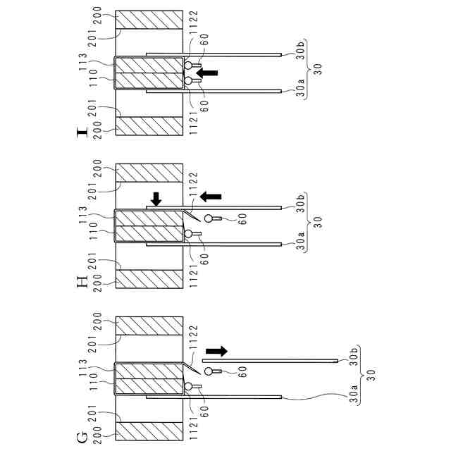 前記一対のコイルの下方から、2つのガイド部の夫々が各コイルの内側を通り抜けて上昇する上昇ステップと、