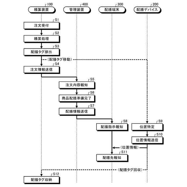 上記従来技術にあるように、客が自ら商品を注文して、装置を介して注文内容を調理担当者に直接報知することで、注文の聞き間違い等の人的ミスが防止されるが、キッチンで完成した商品を店員が客のテーブルへ配膳する際に配膳先を間違える可能性が残る。
