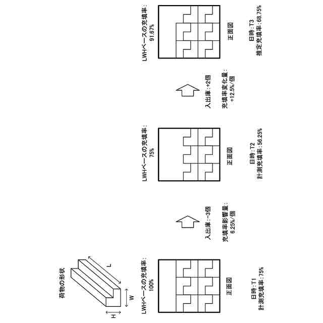 【解決手段】棚の収容可能空間に対する物体の充填率を管理する充填率管理方法は、前記棚において複数の時刻のそれぞれで計測した複数の充填率と、前記棚に対する物体の入出庫数とに基づいて、前記物体の1個当たりの充填率に対する影響量を示す充填率影響量を算出する。