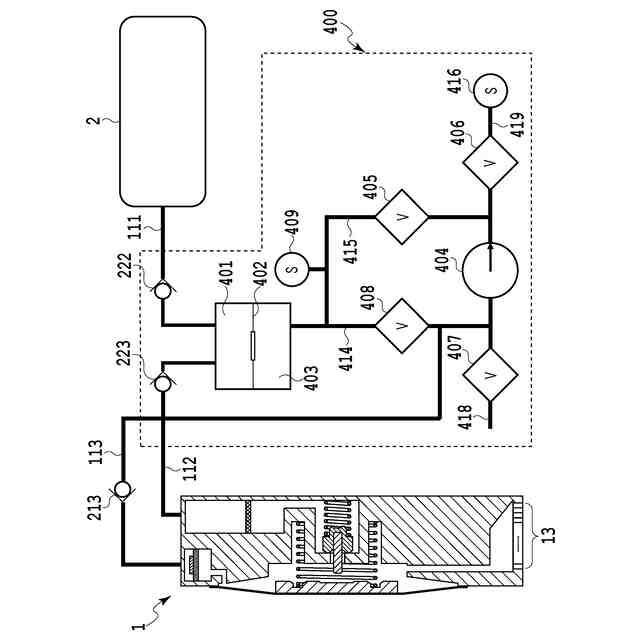 ところで、インクジェット記録装置の分野では、可撓性部材を介して中間タンクと接する圧力室を減圧することで、インクタンクから中間タンクに向けてインクを引き込むインク補給動作が知られている。このようにして中間タンクに引き込まれたインクは、記録時に加圧手段により加圧されて、記録ヘッドに供給される。