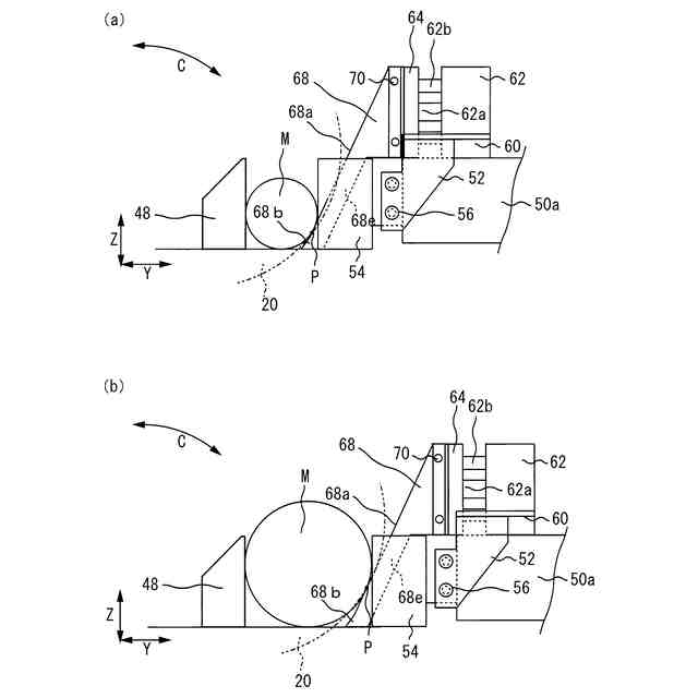 しかしながら、上記従来構成では、図7に示すように、棒材Mとして小径なものが切断される場合(a参照)および大径なものが切断される場合(b参照)のそれぞれに対応して棒材Mの曲率に一致する円弧面140bを有する当接部材140を用意し、棒材Mの種類が変更される毎に当接部材140を交換する必要があった。