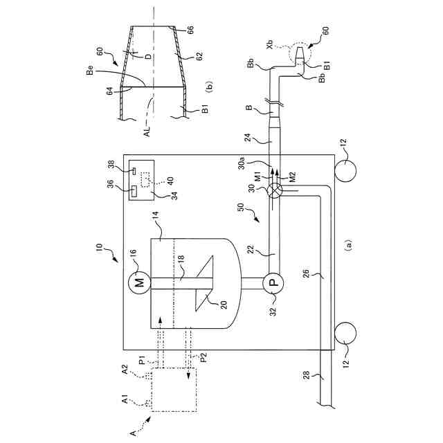 スラリーアイス洗浄装置が洗浄の対象とする被洗浄管には様々な種類のものがあり、例えば食品製造用の製造ラインで使用される被洗浄管は小径で且つ屈曲部を有している。この種の被洗浄管内にスラリーアイスを注入する場合には屈曲部の内周部でのスラリーアイスの流速が屈曲部の外周部でのスラリーアイスの流速に比べて遅くなるので、スラリーアイスが屈曲部の内周部に付着もしくは滞留し易くなる。このため、屈曲部のうちスラリーアイスの付着や滞留が無い外周部に後続のスラリーアイスが流れてしまうので、スラリーアイスの付着や滞留が生じた内周部において、スラリーアイスによる研磨量が減ってしまう傾向にある。従って、屈曲部の内周部に汚れが付着していた場合に汚れが除去されない虞がある。尚、他にも汚れの付き方が特殊な場合は、同様なスラリーアイスの付着や滞留が生じることがある。