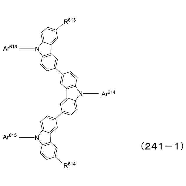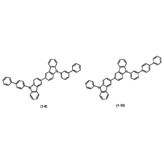 特許文献3には、以下のようなビスカルバゾール骨格を含む化合物を含む発光層を湿式成膜法で形成した有機電界発光素子が開示され、有機溶媒への溶解性に優れた有機電界発光素子用の発光層形成用組成物を提供する試みがなされている。