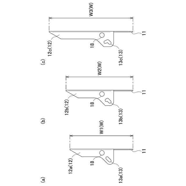 風向板の側面図であり、一方の端部に設けられた軸支片の説明図である。(a)は開口部の上部に取り付けられた風向板の一方の軸支片、(b)は開口部の中間部に取り付けられた風向板の一方の軸支片、(c)は開口部の下部に取り付けられた風向板の一方の軸支片を示している。