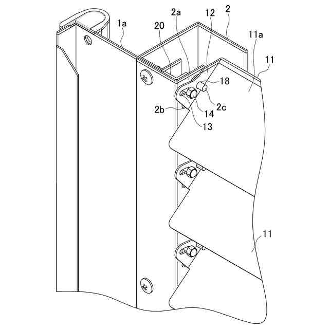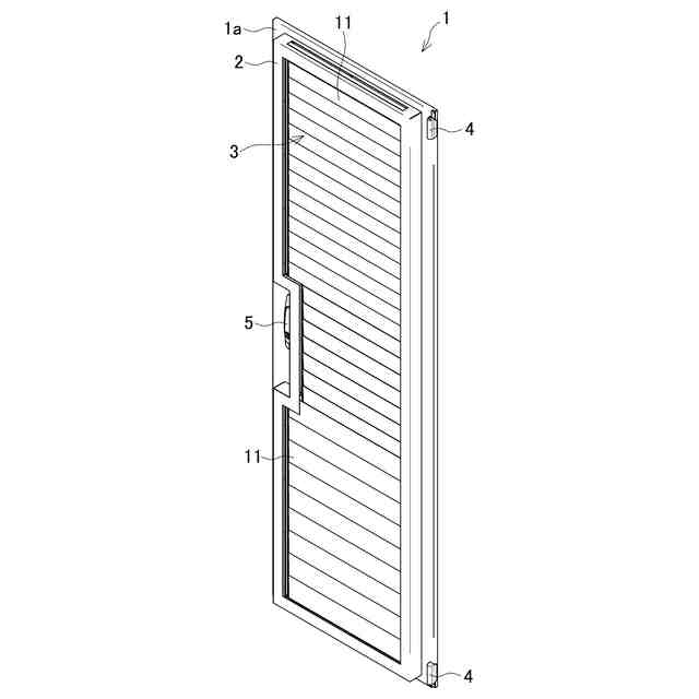 【解決手段】 空気を通過させるための開口部3が上下に亘り形成され、この開口部3には空気の流れる方向を上下方向で変更可能とする複数の風向板11が配置されておる。風向板11は横長の帯状片であり、開口部3左右の縦枠2aに左右両端が軸支されて左右方向の回動軸を有し、一方の軸支部には縦枠2aに沿って配置された回動操作部材20の係合突起14が係合する回動連携部13が設けられている。回動操作部材20の所定の操作により、回動連携部13を介して風向板11が開口部3を閉じた状態から一定角度開いて開口部3を開放する状態までの回動を実施する。この回動連携部13は、風向板11の回動角が異なる複数種類で構成されている。