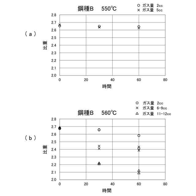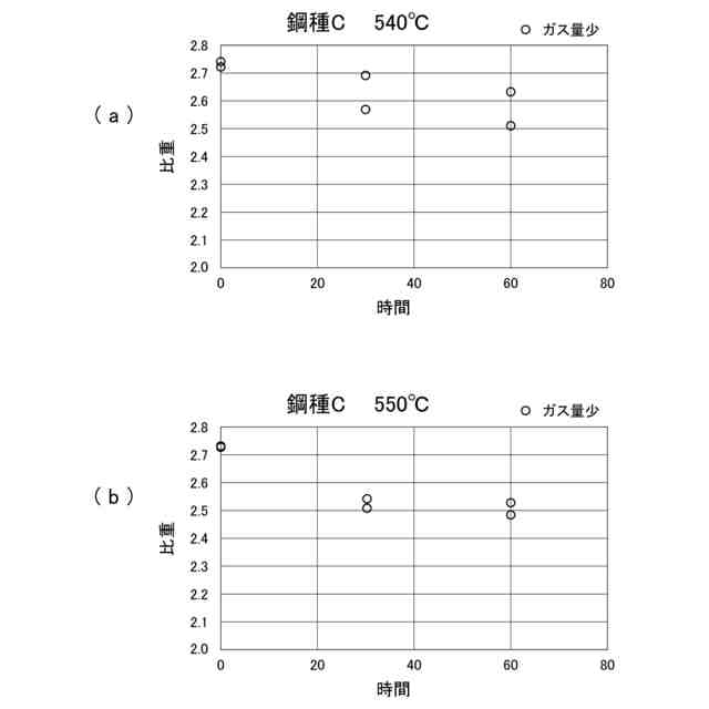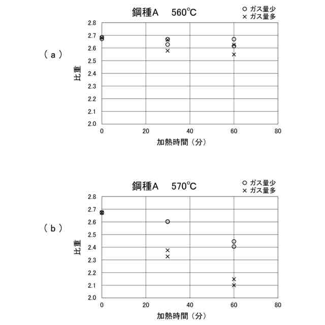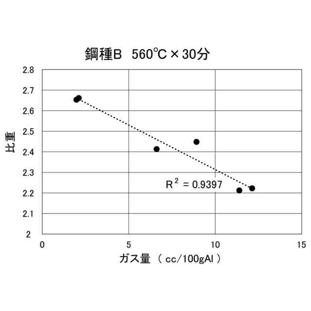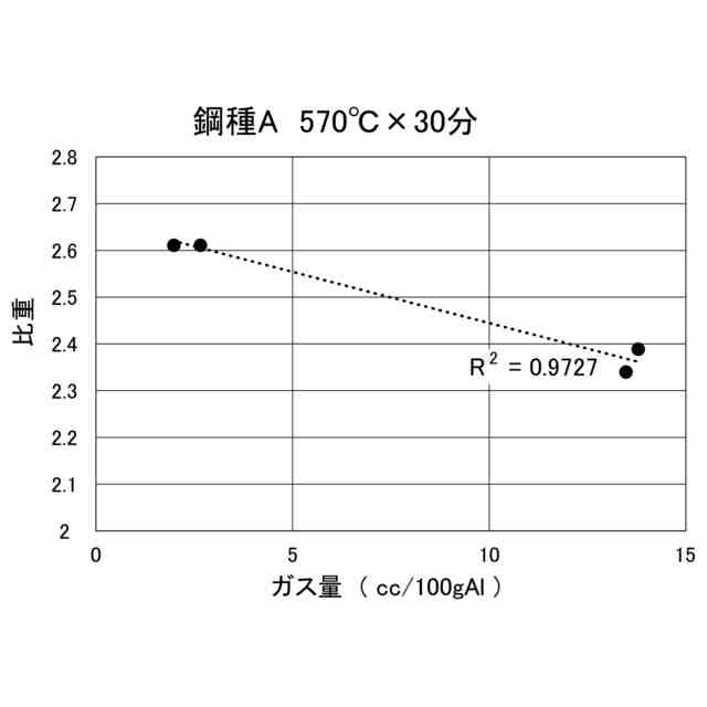 また、本発明に係るダイカスト品のガス量推定方法において、前記加熱条件のうちの加熱温度は、前記アルミダイカスト品(10)の液相線温度の94%~95%の温度であることが好適である。