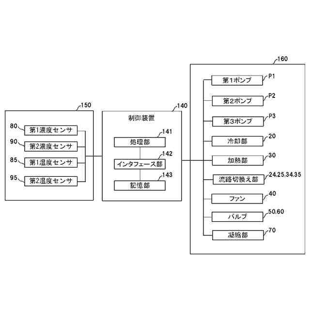 実施形態に係る二酸化炭素回収装置の制御ブロック図。