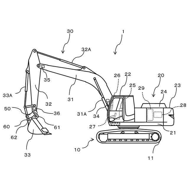 【解決手段】アーム部材となるブーム31およびアーム32と、アタッチメントとなるバケット33と、を有する作業装置30と、ロックシリンダ53の伸縮によりバケット33とアーム32とを着脱可能に接続するクイックカプラ50と、ロックシリンダ53に導かれる作動油の流れを切り換える切換弁71と、油圧ポンプ28から吐出された作動油を昇圧させる昇圧弁72と、切換弁71および昇圧弁72をそれぞれ制御するコントローラ80と、を備えた油圧ショベル1において、コントローラ80は、クイックカプラ50とピン61,62とが接触状態であると判定した場合に、昇圧弁72を昇圧させるように制御するとともに、作動油をロックシリンダ53のボトム室に導くように切換弁71を切り換える。