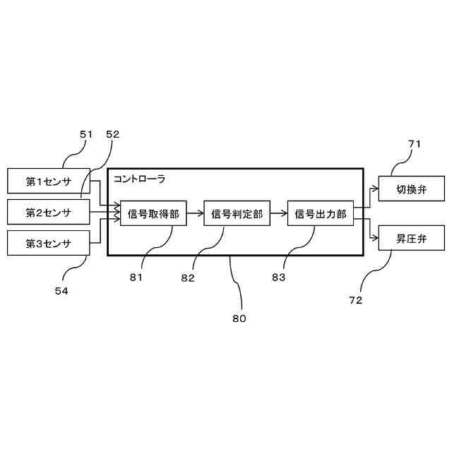 前記切換弁および前記昇圧弁をそれぞれ制御するコントローラと、