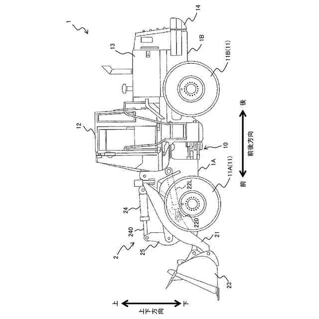 本発明の実施形態に係るホイールローダの一構成例を示す外観側面図である。