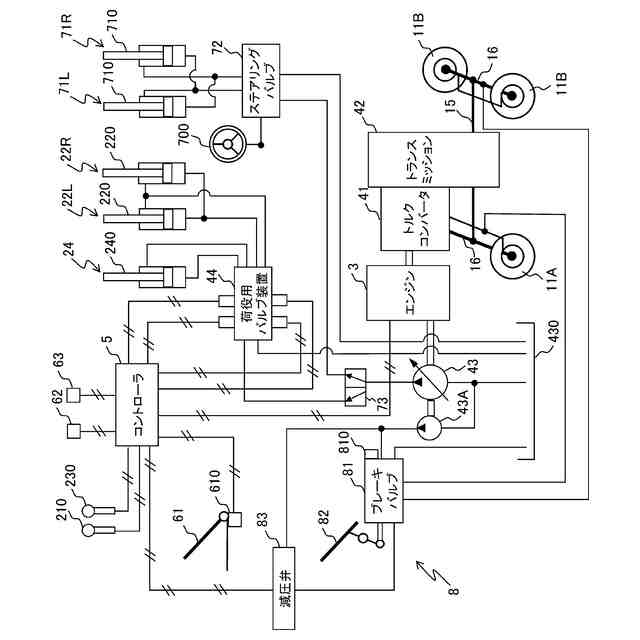 ホイールローダの駆動システムの一構成例を示すシステム構成図である。