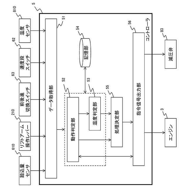 ホイールローダは、例えばダンプトラックなどの積込み先への荷の積込み作業の際には、積込み先に向かって前進走行しながらリフトアームを上方向に動作させる。この積込み作業では、リフトアームが上がりきるまでの時間と積込み先までの走行距離とのバランスが重要になる。走行距離に対してリフトアームが上がりきるまでの時間が長い場合、その分だけ積込み先までの走行距離を長く設定しておく必要が出てくる。走行距離が長くなると、ホイールローダの燃料の消費量が多くなってしまう。
