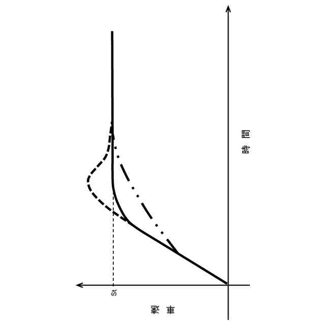 ブレーキ圧の立ち上がりと車速の時間推移との関係を示すグラフである。
