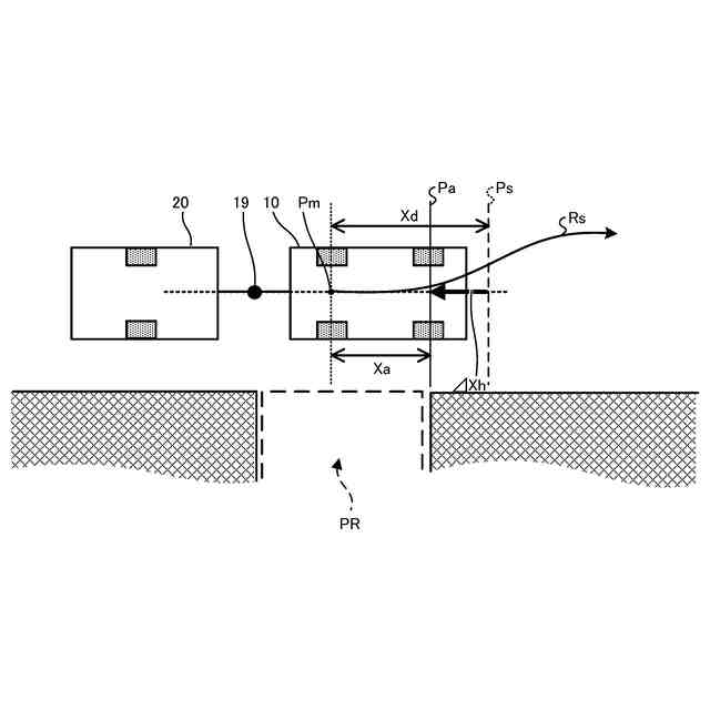 図14は、実施形態の変形例にかかる牽引支援装置が目標経路のうち前進経路を生成する動作の一例を示す説明図である。