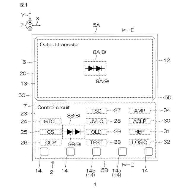 図1は、本開示の第1実施形態に係る半導体装置1の模式的な平面図である。図2は、図1に示すII-II線に沿う断面図である。図1および図2を参照して、半導体装置1は、直方体形状に形成されたチップ2を含む。チップ2は、この形態(this embodiment)では、Si単結晶を含むSiチップである。