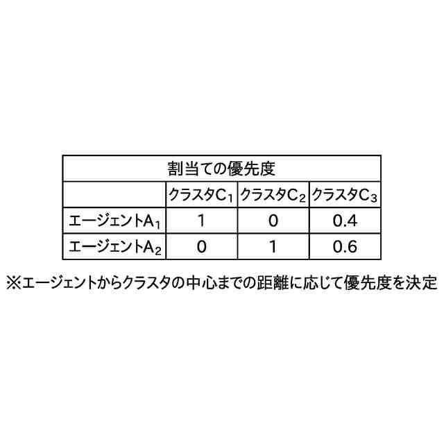 エージェントのクラスタに対する割当ての優先度を示す表。