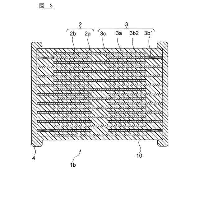 前記第2内部電極層よりも内側にありギャップ対応部を有さない内部電極層を第3内部電極層とし、