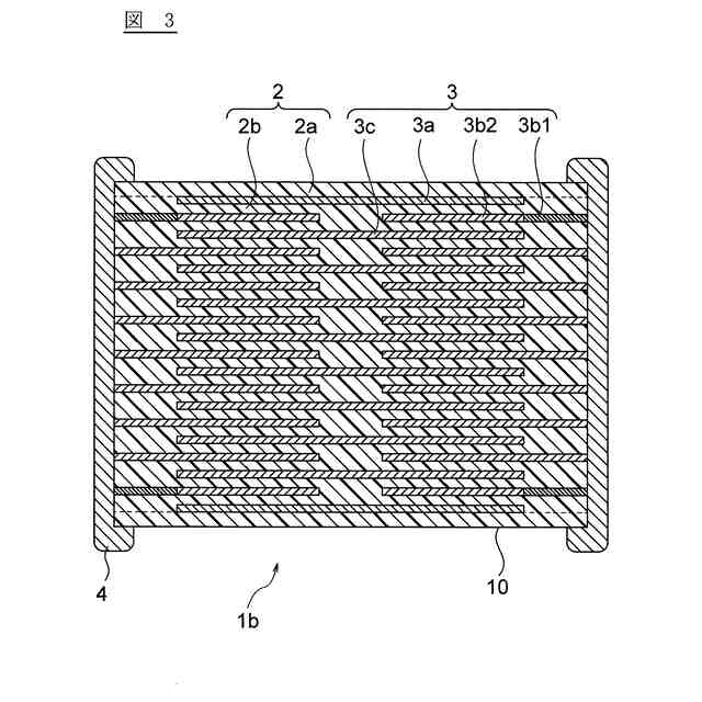 前記第2内部電極層よりも内側にありギャップ対応部を有さない内部電極層を第3内部電極層とし、