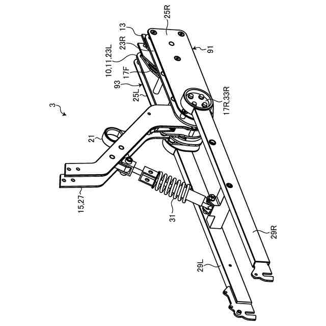 図9は、実施形態の折り畳み装置車両を示す例示的かつ模式的な分解斜視図である。