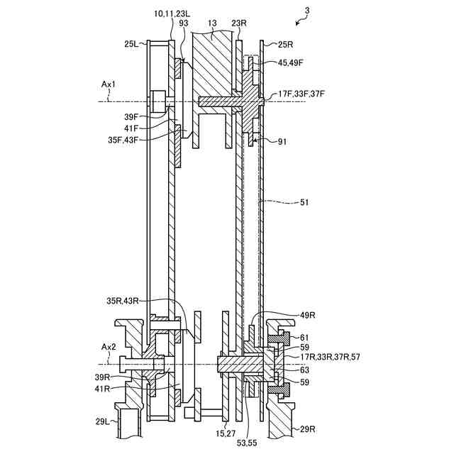 図3は、実施形態の車両の折り畳み手順の一部を示す例示的かつ模式的な図であって、図2に続く手順を示す図である。