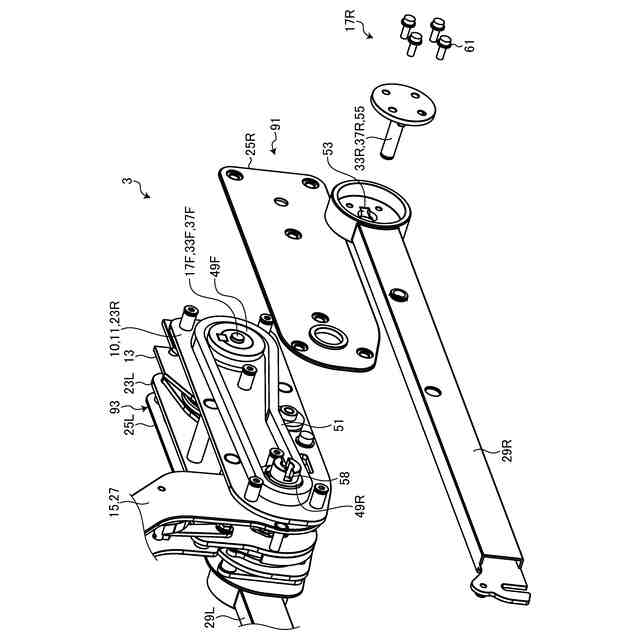 図8は、実施形態の折り畳み装置の一部を示す例示的かつ模式的な分解斜視図示す図である。