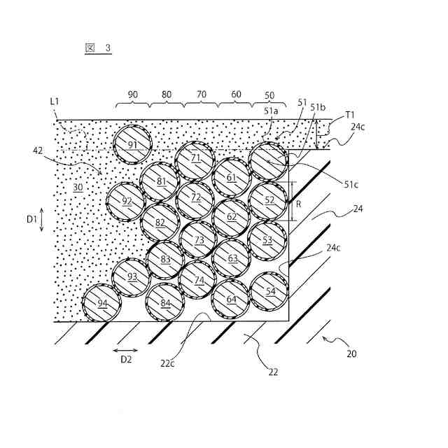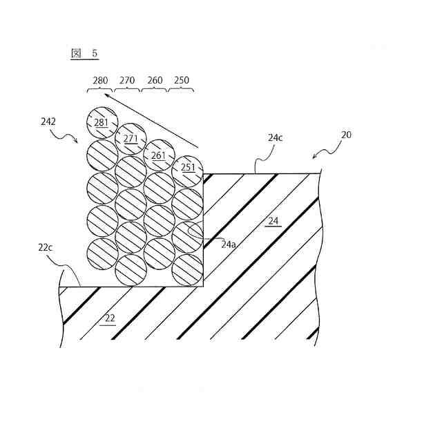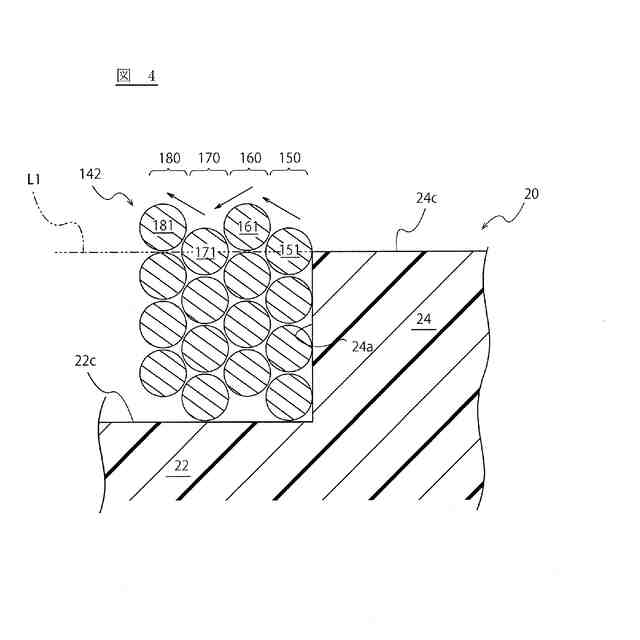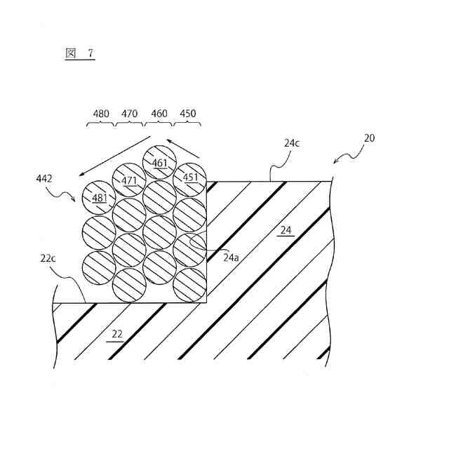 また、たとえば、前記巻回部において前記第1層に重ねて前記突出部へ巻かれる第2層に含まれる前記ワイヤ断面のうち最も前記板状部から離間する第2層最上段ワイヤ断面は、前記第1層最上段ワイヤ断面に比べて、前記板状部に近くてもよい。