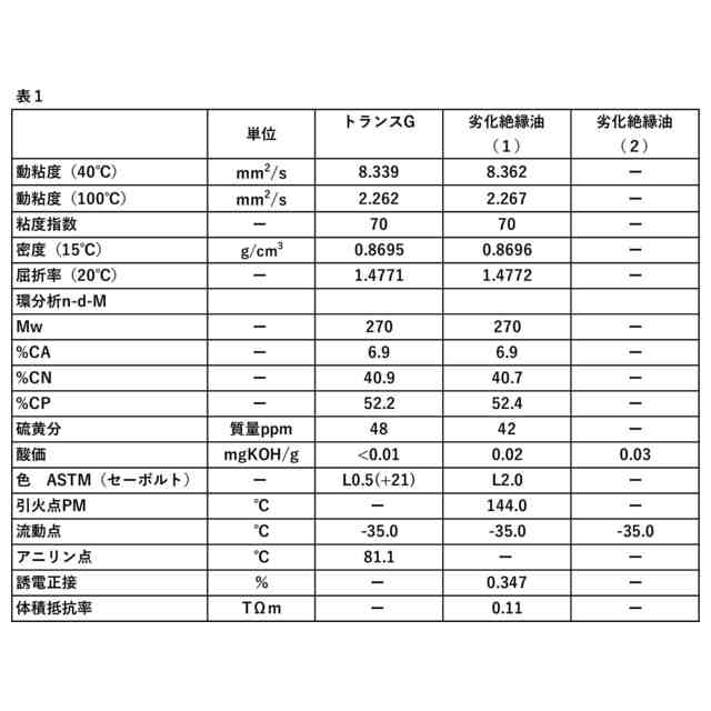 電気絶縁油は、例えば、油入コンデンサ、油入ケーブル、油入変圧器、及び油入遮断器等の油入電気機器の絶縁材料として使用される。近年、環境への対応の観点から、海外では電気絶縁油品質の国際規格であるIEC60296が改正され、未使用絶縁油と使用済み絶縁油を再生して得られる絶縁油(以下、「再生絶縁油」という)は品質上の区別なく同等に扱われるようになっている。