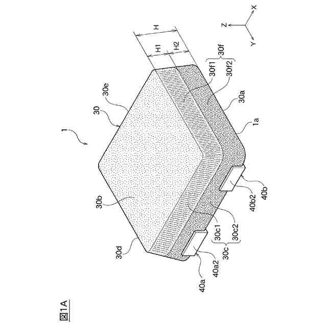 【解決手段】外装体30と、外装体30の内部に配置された素子本体10とを有する電子部品1であって、外装体30は、熱硬化性樹脂を含み、対向する第1主面1aと第2主面30b、および前記第1主面1aと前記第2主面30bを接続する1つ以上の側面30c~30fを有し、前記側面30c~30fの少なくとも1つは、第1領域30c1と、第1領域より表面粗さが大きい第2領域30c2とを含み、前記外装体30の前記第1領域30c1を形成する部分と、前記外装体30の前記第2領域30c2を形成する部分とは、同じ種類の熱硬化性樹脂を含む電子部品。