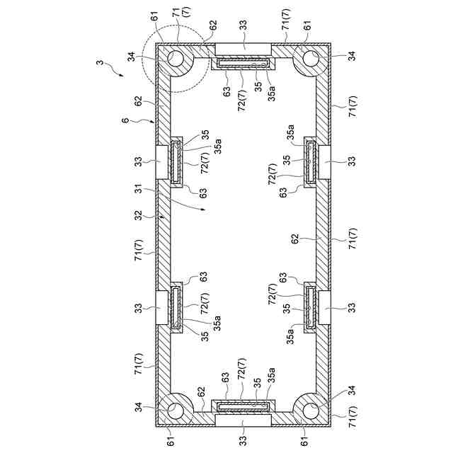 (4)上記の(1)~(3)の何れかにおいて、被膜部は、回路基板の端面に形成されていてもよい。このような構成では、回路基板の端面に形成された被膜部によって電磁ノイズを効果的に抑制することができる。また、回路基板の端面に被膜部を形成することにより、簡単な加工処理によって被膜部を導電部と電気的に接続することができる。
