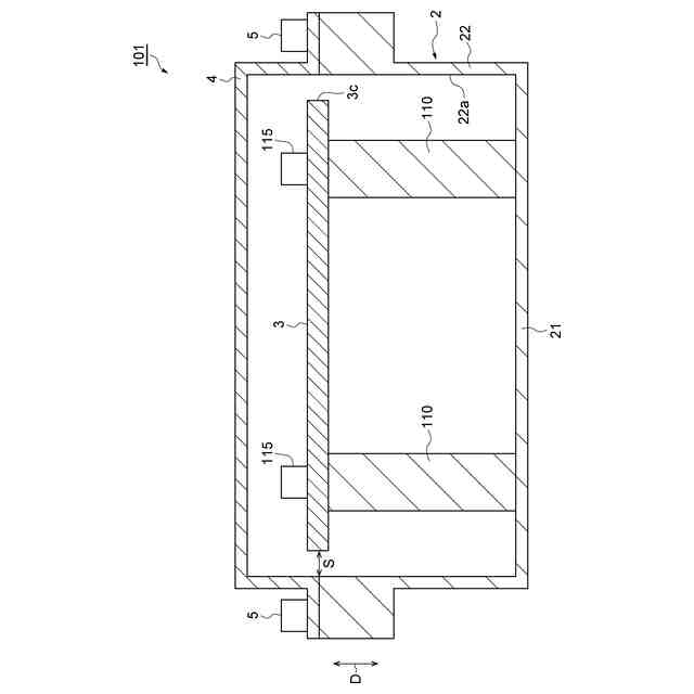 【解決手段】底壁21と、底壁21の方向D(立設方向)に突出した側壁22と、を含む金属製の筐体2と、側壁22を挟んで方向Dにおいて底壁21と対向するように配置された回路基板3と、回路基板3を挟んで方向Dにおいて底壁21と対向するように配置され、筐体2に対して回路基板3を覆う金属製のカバー4と、を備え、回路基板3は、方向Dから見た場合において、側壁22の外周部32と重なっており、回路基板3におけるカバー4側の第1主面3a及び筐体2側の第2主面3bには、カバー4及び筐体2と電気的に接続された導電部6が形成され、導電部6には、回路基板3の外周部32及び当該外周部32より外側の部分の少なくとも一方において方向Dに沿って第1主面3aから第2主面3bまで形成された導電性の被膜部7が電気的に接続されている。