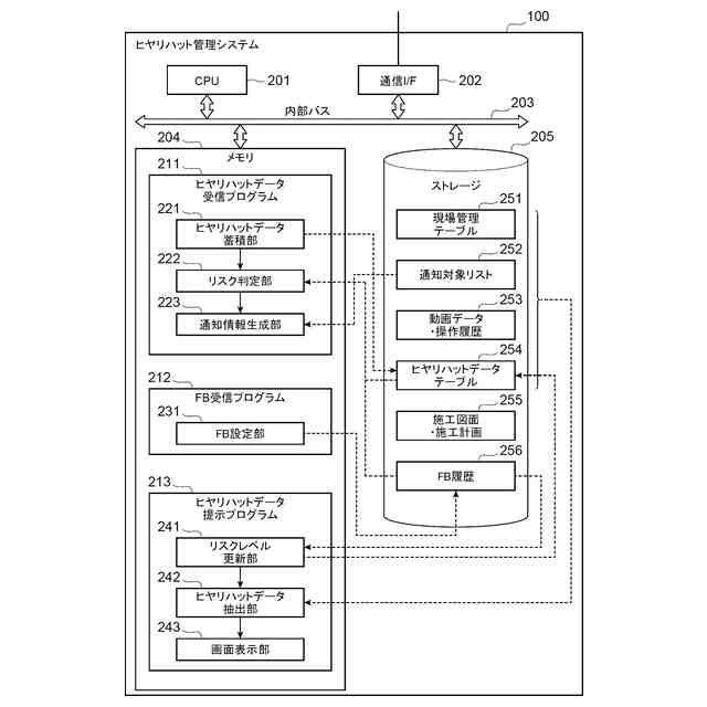 前記ヒヤリハットデータテーブルに保存された前記ヒヤリハットデータには、前記ヒヤリハット事象が生じた現場を一意に定めるための識別子を含み、